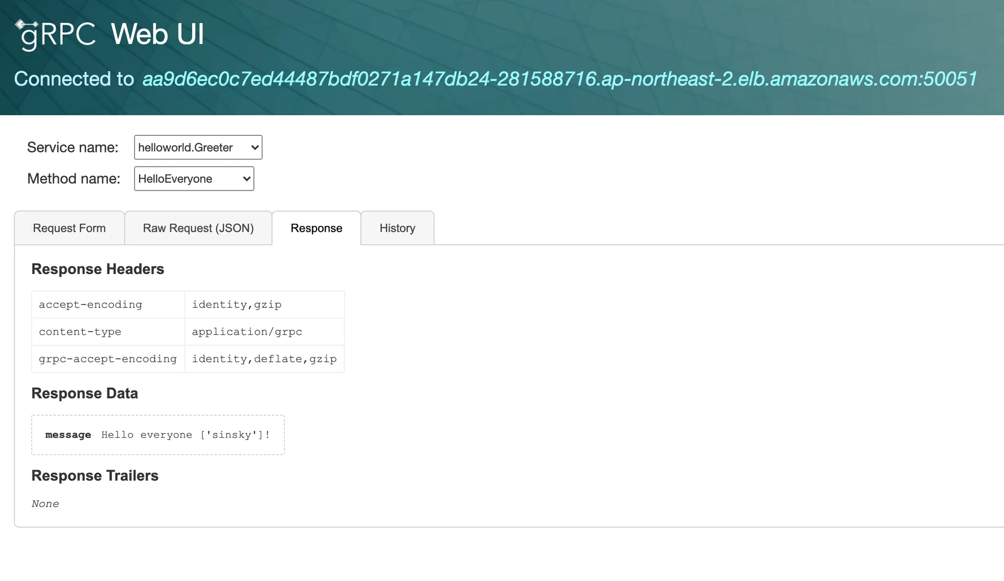 실제로 grpcui를 통해 요청을 날려보니 잘 되는것을 확인했으며 로그 역시 실시간으로 확인 할 수 있었습니다.