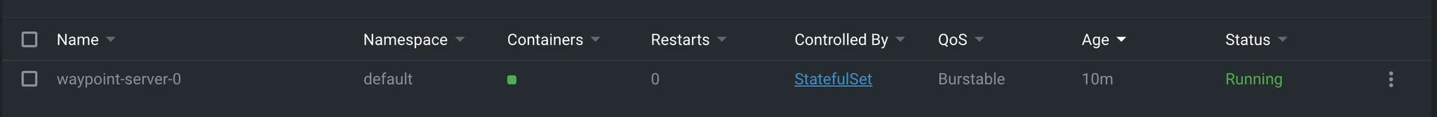 명령어를 실행하니 로컬에 설정된 기본 쿠버네티스에 waypoint pod이 생긴걸 확인 할 수 있었습니다.