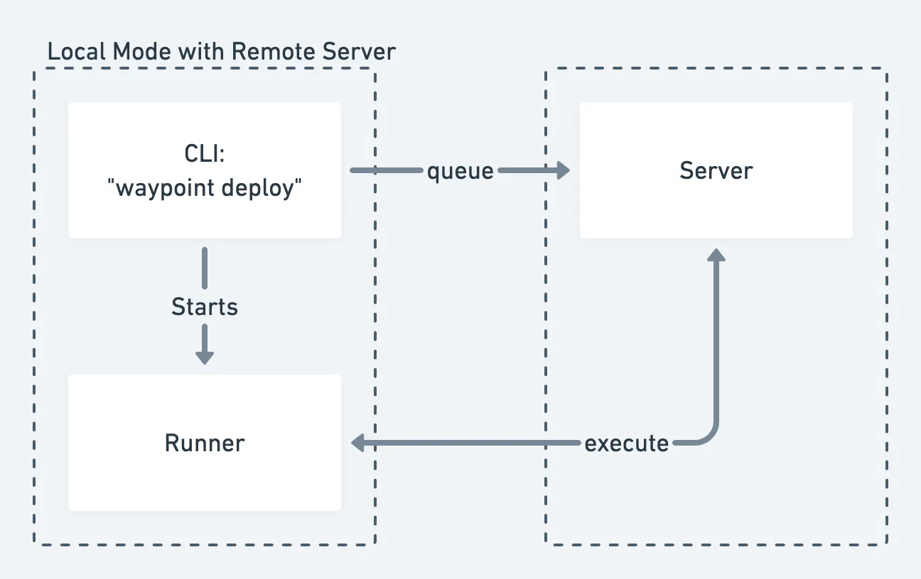 기존의 테라폼은 락기능등을 제공하기 위해 별도의 백엔드를 둘 수 있으나 기본적으로는 서버 없이 작동 할수 있습니다. 하지만 waypoint는 별도의 서버를 통해 작동 하다 보니 서버가 죽으면 cli,ui 모두 작동이 안됩니다.